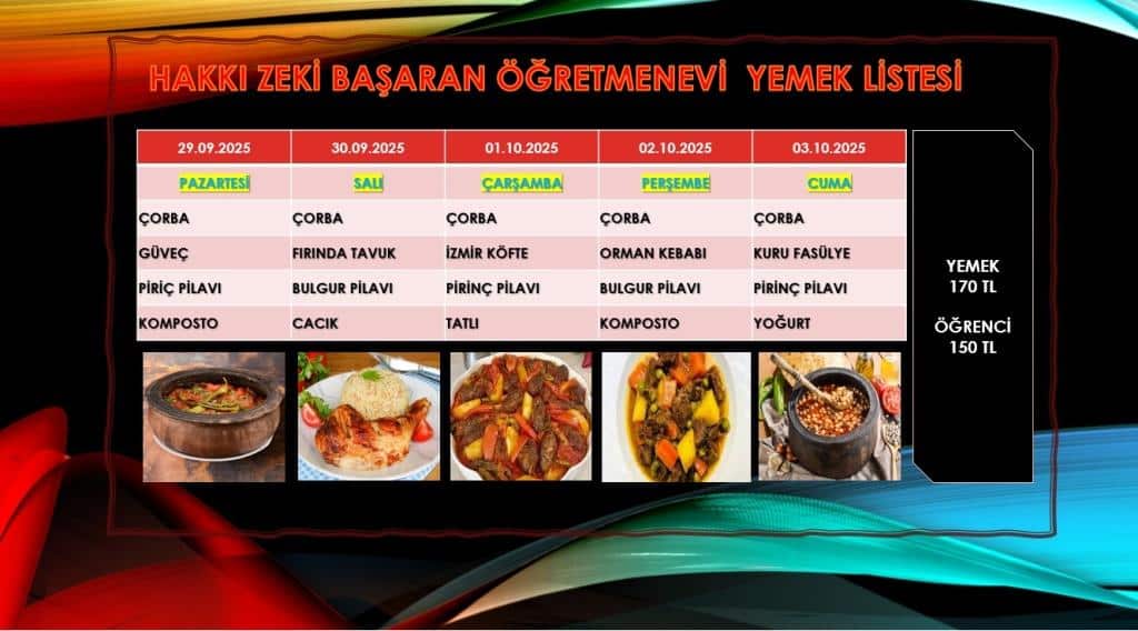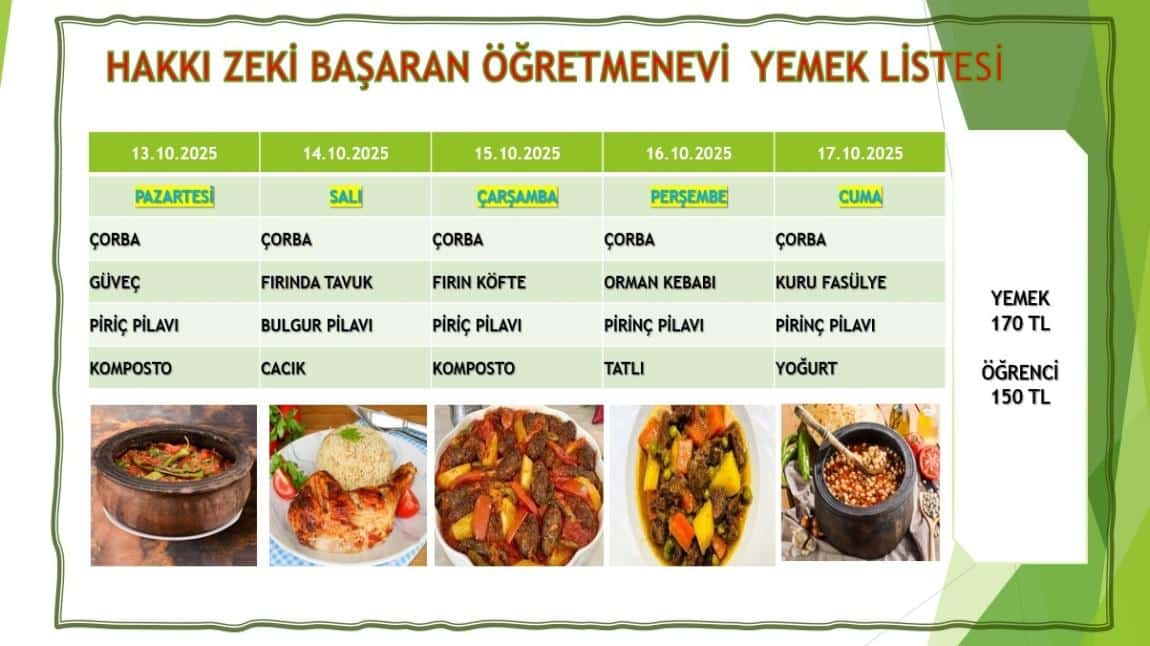 13-17 EKİM TARİHLERİ ARASINDAKİ YEMEK LİSTEMİZ...